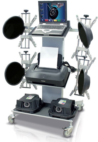- В комплектацию включено: РС, монитор 19, принтер, зарядная станция, 4-х точечные колесные адаптеры 10 - 24" (захват - за закраину диска), поворотные круги c проставками для прокатывания, стопоры руля и тормозной педали.