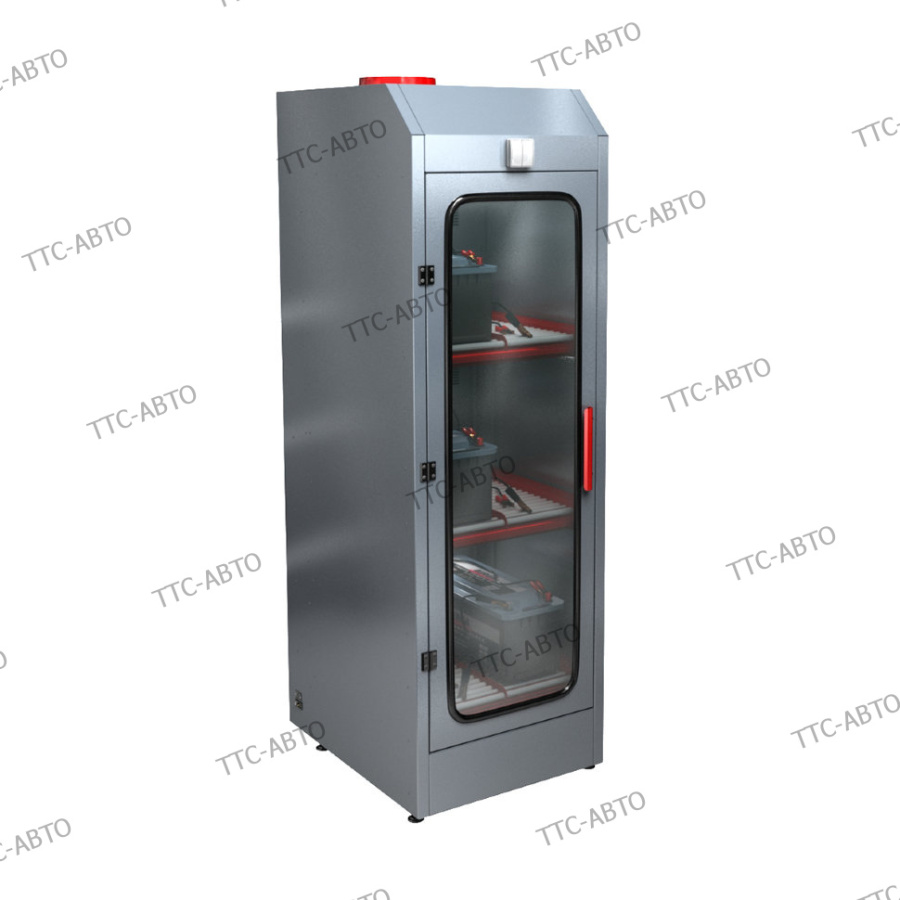 Встроенная система вытяжки для отвода паров водорода и серной кислоты позволяет устанавливать шкафы в любых производственных помещениях.