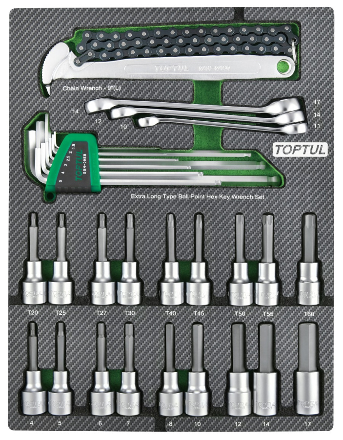 Набор торцевых насадок, шестигранники Г-образные и разрезные ключи, 31 пр. в мягком ложементе TOPTUL GEB3109 купить в Пензе и других городах России