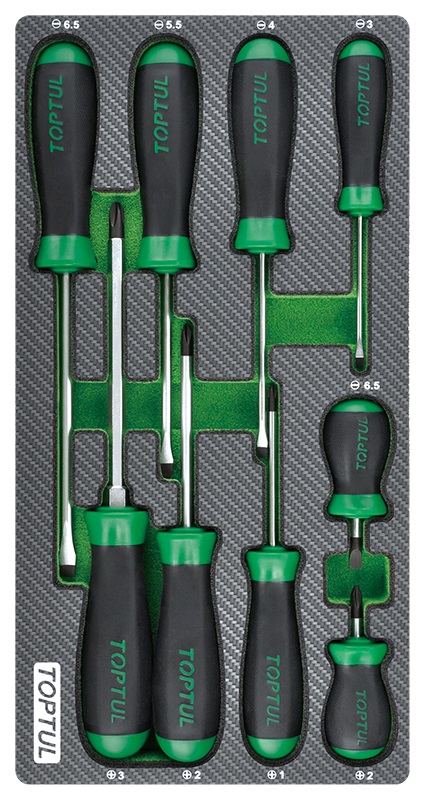 Набор отверток крест и шлиц, 9 пр., в мягком ложементе TOPTUL