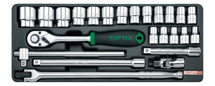 Набор головок и аксессуаров 1/2" 6-32 мм, 24 предмета, в ложементе TOPTUL GCAT2402 купить в Пензе и других городах России