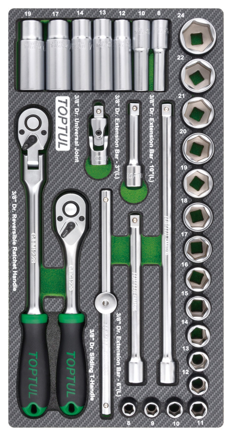 Набор головок и аксессуаров 3/8", 30 пр. в мягком ложементе TOPTUL GEA3005 купить в Пензе и других городах России