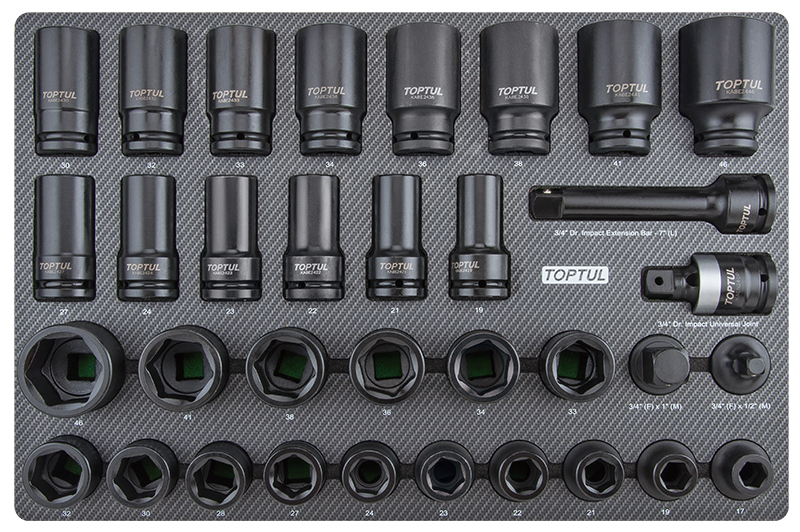 Набор ударных головок 3/4'' 17-46 мм короткие и длинные, 34 пр. в мягком ложементе (D) TOPTUL купить в Пензе и других городах России