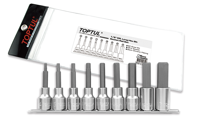 Набор торцевых головок 1/2" с шестигранными вставками 4-17 мм L=80 мм на планке 9 предметов TOPTUL купить в Пензе и других городах России