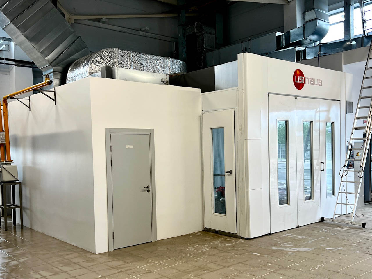 5. Поставлена и смонтирована подъемная складская платформа с высотой подъема, эквивалентной 3-му этажу, для эффективного использования складских площадей.6. Установлена современная система вытяжки отработанных газов, обеспечивающая безопасность персонала в зонах ремонта автомобилей.